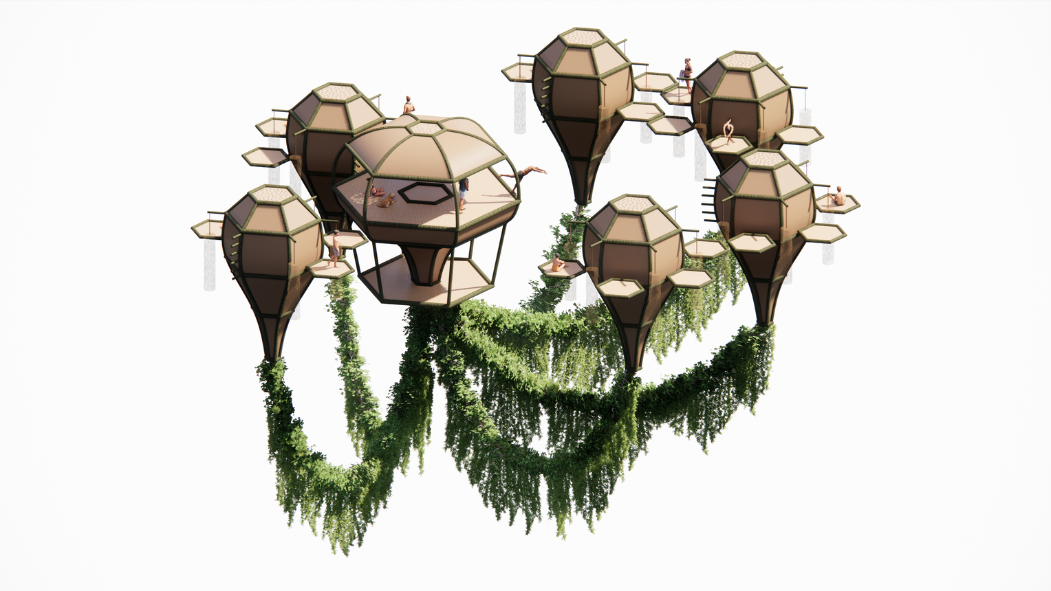 In a speculative era with throttling global issues such as global warming, project Biohome, envisions an anticipated future 100 years down the line. Wherein the rising sea levels, pose a threat to humanity in coastal cities such as Miami, New Orleans, etc. Triggering the necessity for an innovative solution to a sustainable ecosystem, that is resilient to the given conditions. The vision of the project aims to foster a symbiotic relationship between humanity and nature through concepts of coexistence, in order to achieve a harmonious and diverse habitat. The focus of this project is to pioneer the creation of self-sufficient, eco-friendly floating habitats, through the integration of land and marine components, using materials like Bamboo, Rattan and Glass. Along with marine components such as Corals, Bioluminescence and Seaweed.